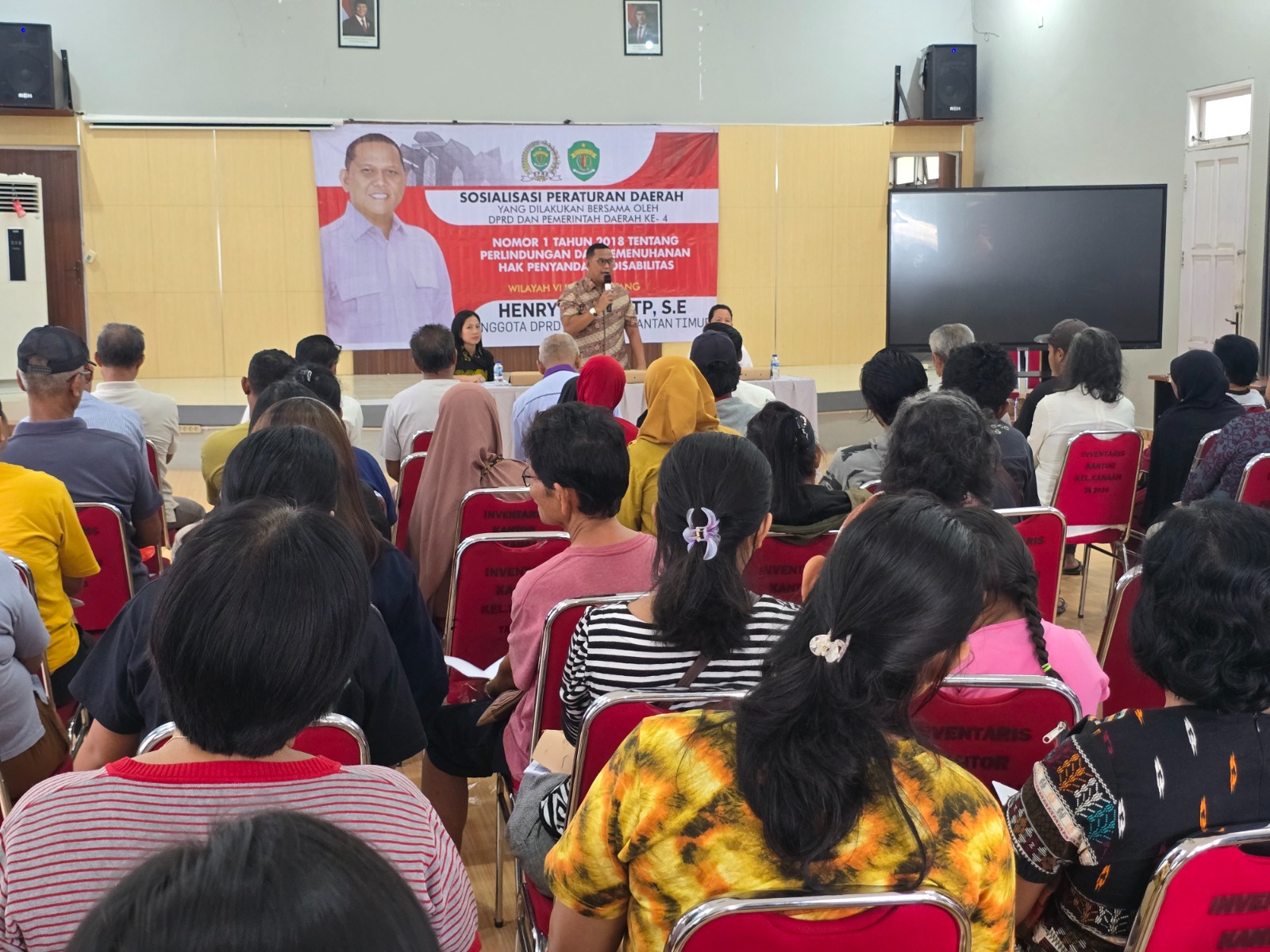 Kaltimreport.com, Bontang – Upaya mendorong pemahaman masyarakat terhadap hak-hak penyandang disabilitas terus dilakukan. Salah satunya melalui kegiatan Sosialisasi Peraturan Daerah (Sosper) Nomor 1 Tahun 2018 yang digelar oleh Anggota DPRD Kalimantan Timur, Henry Pailan TP, SE. Acara tersebut berlangsung pada Minggu, 19 April 2026, di Gedung Serbaguna Kelurahan Kanaan, Kota Bontang.